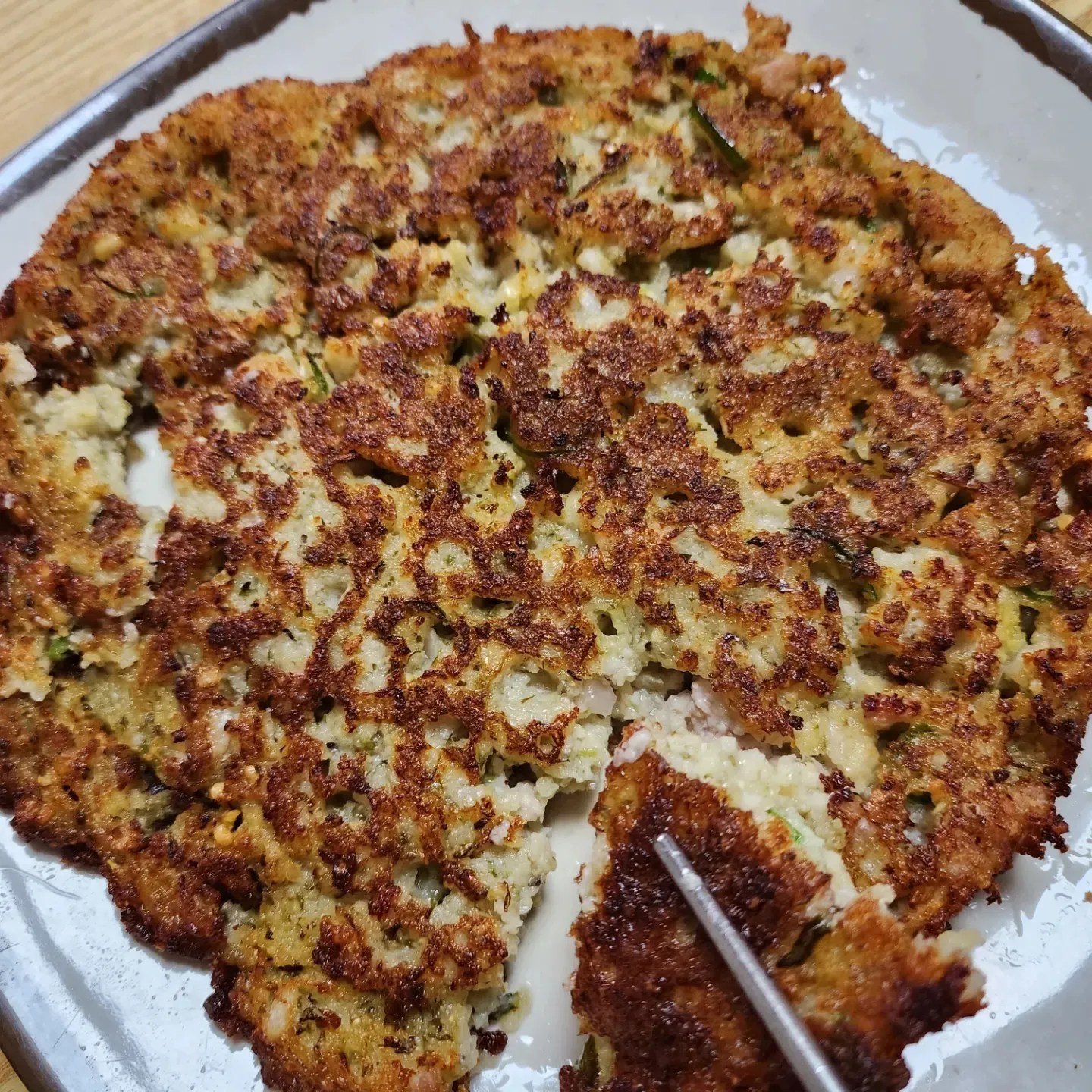 겉은 바삭하고 속은 촉촉하며, 고추가 들어가 매콤하면서도 고소한 맛이 일품!